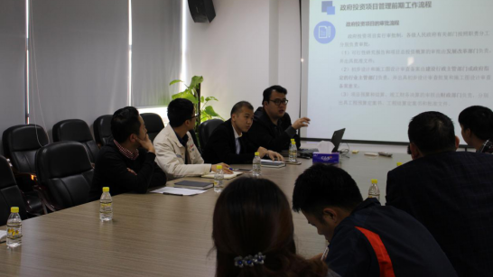 紫金城投公司表示對石化區PPP項目運營管理實務經驗非常感興趣,為此,基建公司投資發展部就石化區PPP項目實務案例——大亞灣石化區J1地塊三期用地軟基處理工程,從項目發起、項目準備、方案編制、項目采購、項目執行等方面作了全面而完整的介紹。紫金城投一行紛紛表示PPP項目前景可觀,希望能將此次學習經驗帶回紫金付諸于工程實踐中去。