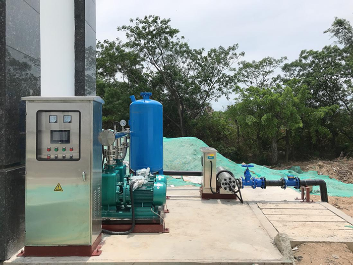合作的實施方案為在大亞第三水質(zhì)凈化廠(二期)出水點增設恒壓供水系統(tǒng)中水提取泵、紫外線消毒設備消毒罐及中水管道等中水回用設施,將生產(chǎn)的中水引入家寶公司停車區(qū)域取水點位置實現(xiàn)為道路灑水車加水。方案對現(xiàn)有設施的改造難度小,易于實施,風險可控。