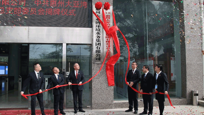 2021年10月25日上午9時,惠州大亞灣環境水務集團在確保做好內部疫情防控措施的前提下,舉行集團及黨總支簡樸而隆重的揭牌儀式,吹響了順應全區供排污一體化改革和國資國企改革的形勢和需要,加快推進集團改革轉型發展、高質量發展的沖鋒號。